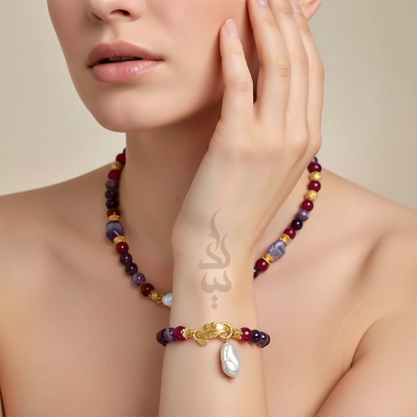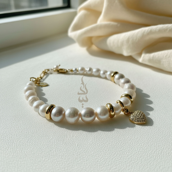925 silver (18K gold plated) bracelet crafted with natural pearls and ceramicbeads